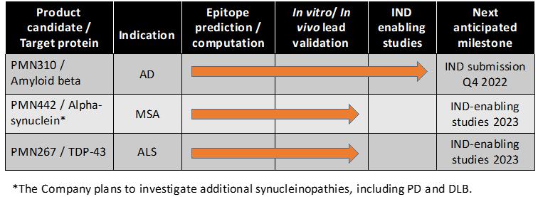 | · | Our lead product candidate, PMN310, is being developed for the treatment of AD, a disease that has seen limited success in drug development. |