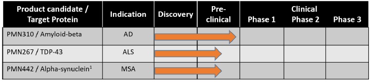 | · | Our lead product candidate, PMN310, is being developed for the treatment of AD, a disease that has seen limited success in drug development. | |